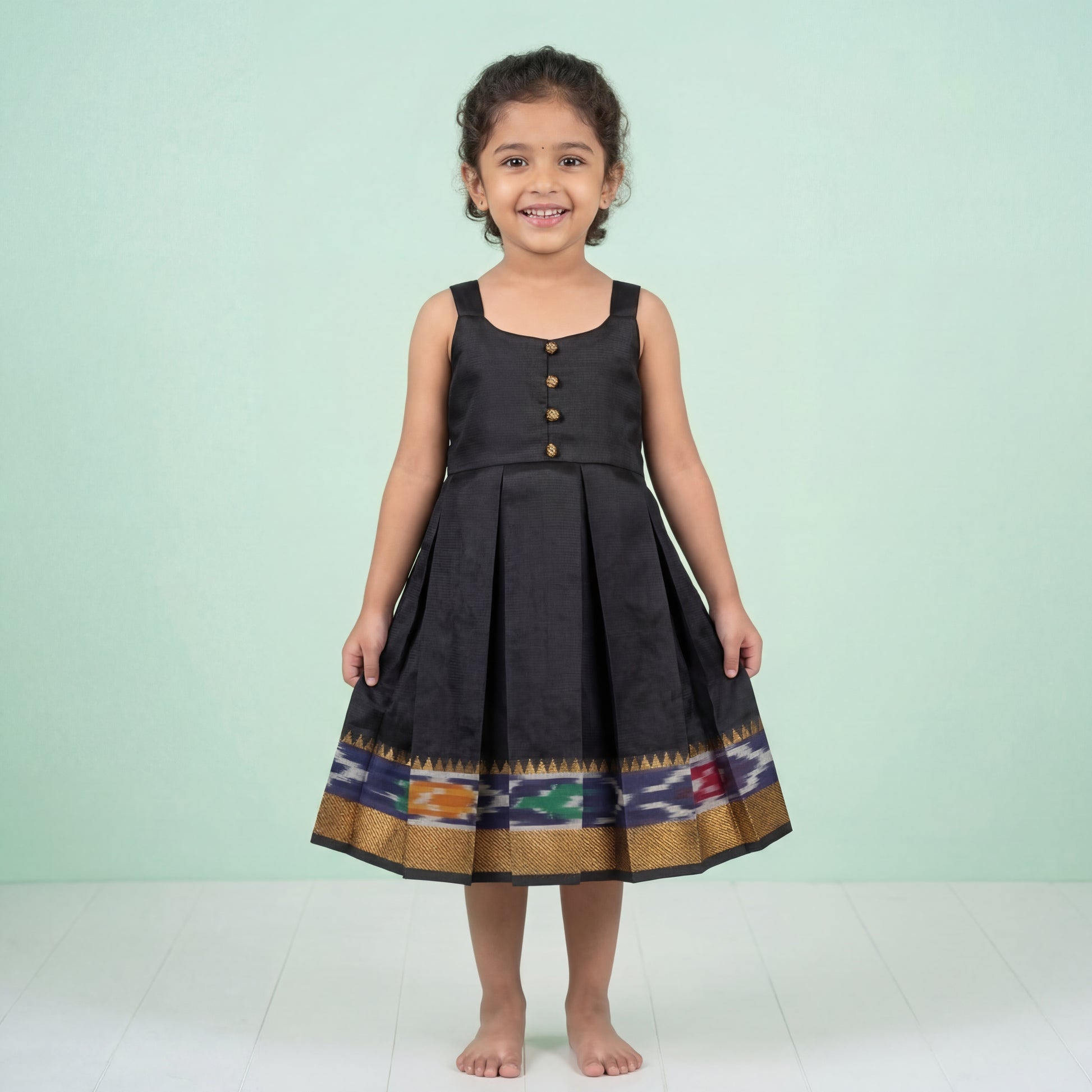 Black Mangalagiri Ikkat Silk Frock