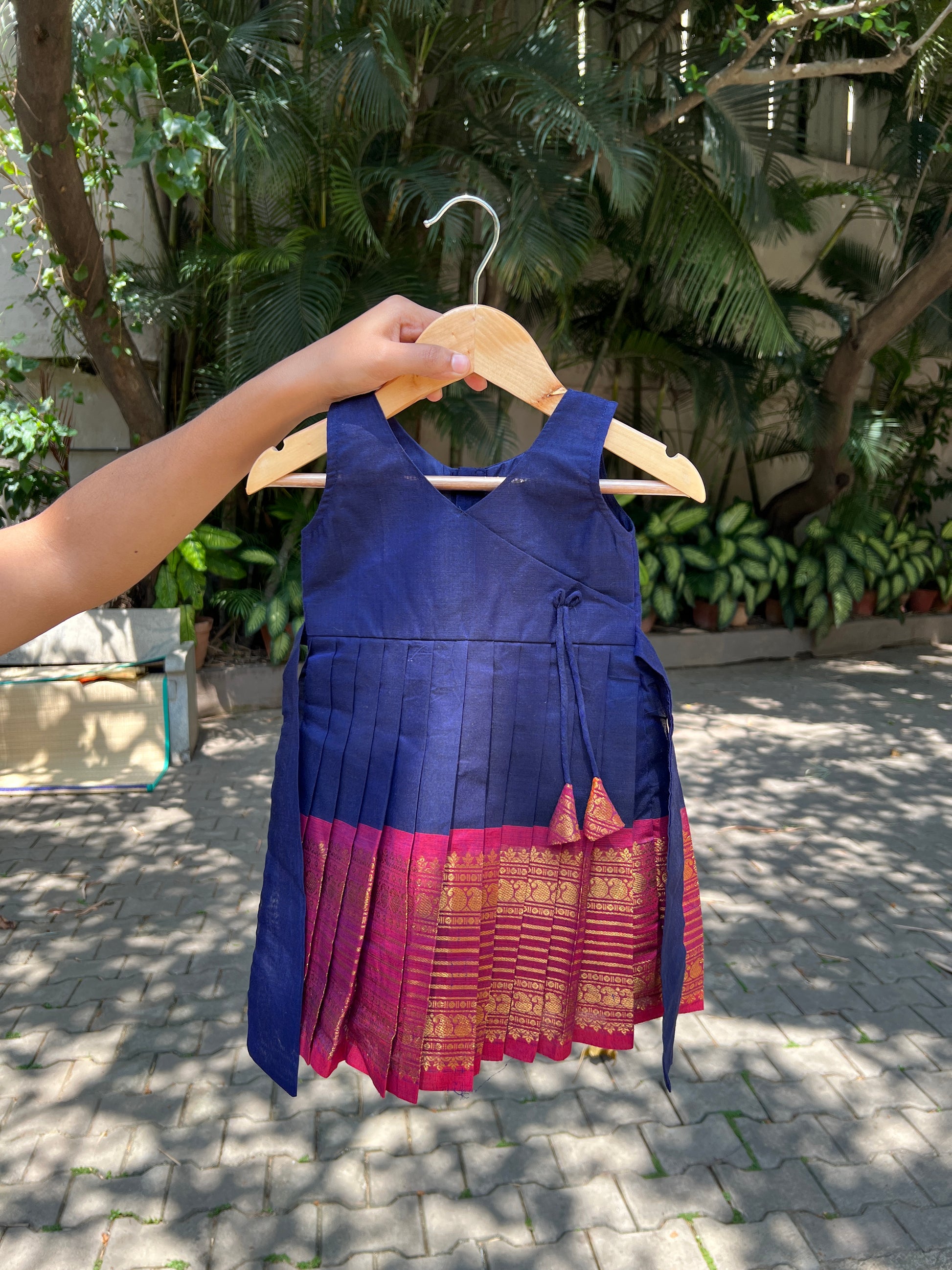 Blue Angrakha Style Kanchi Cotton Frock