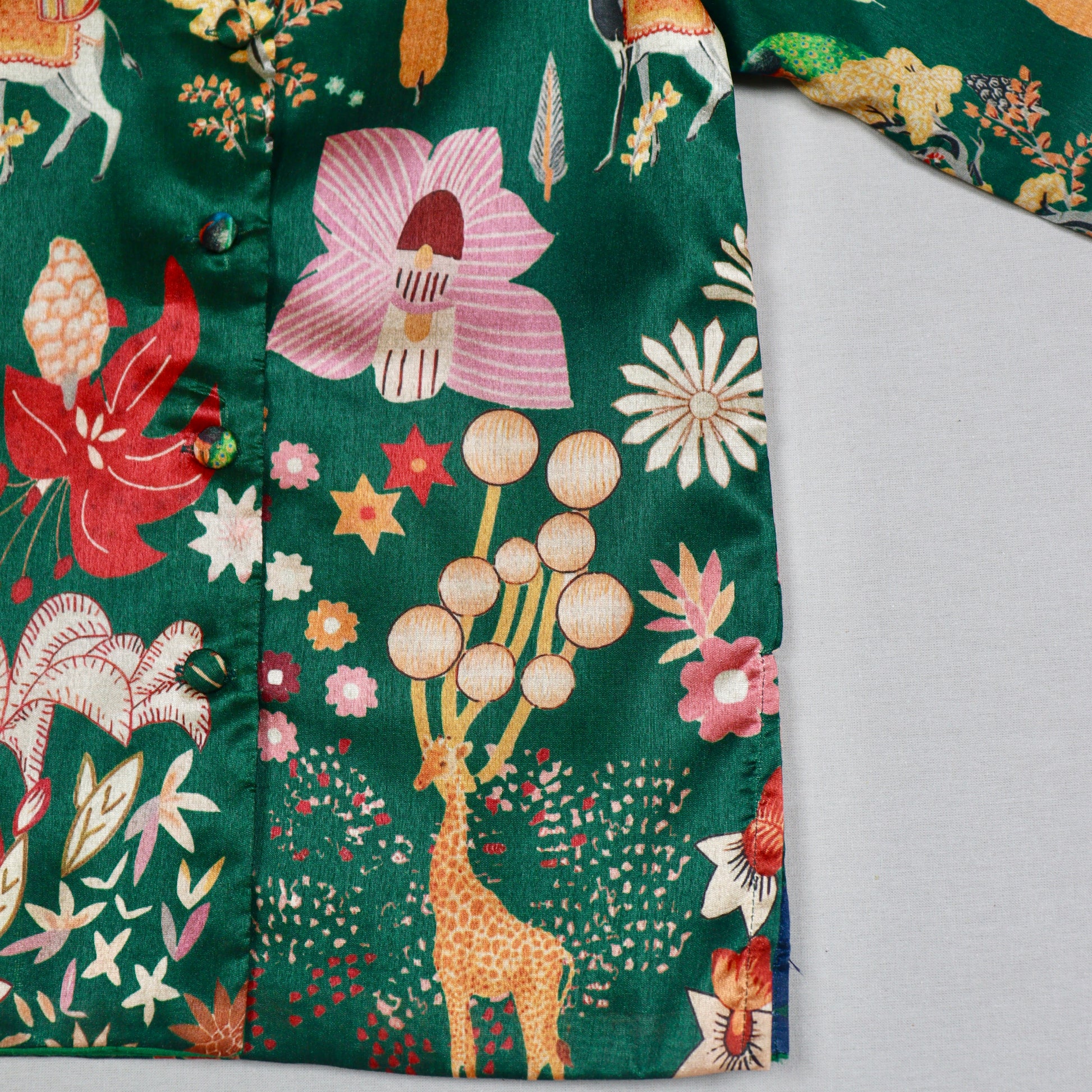 • Opening: Front opening with fabric buttons