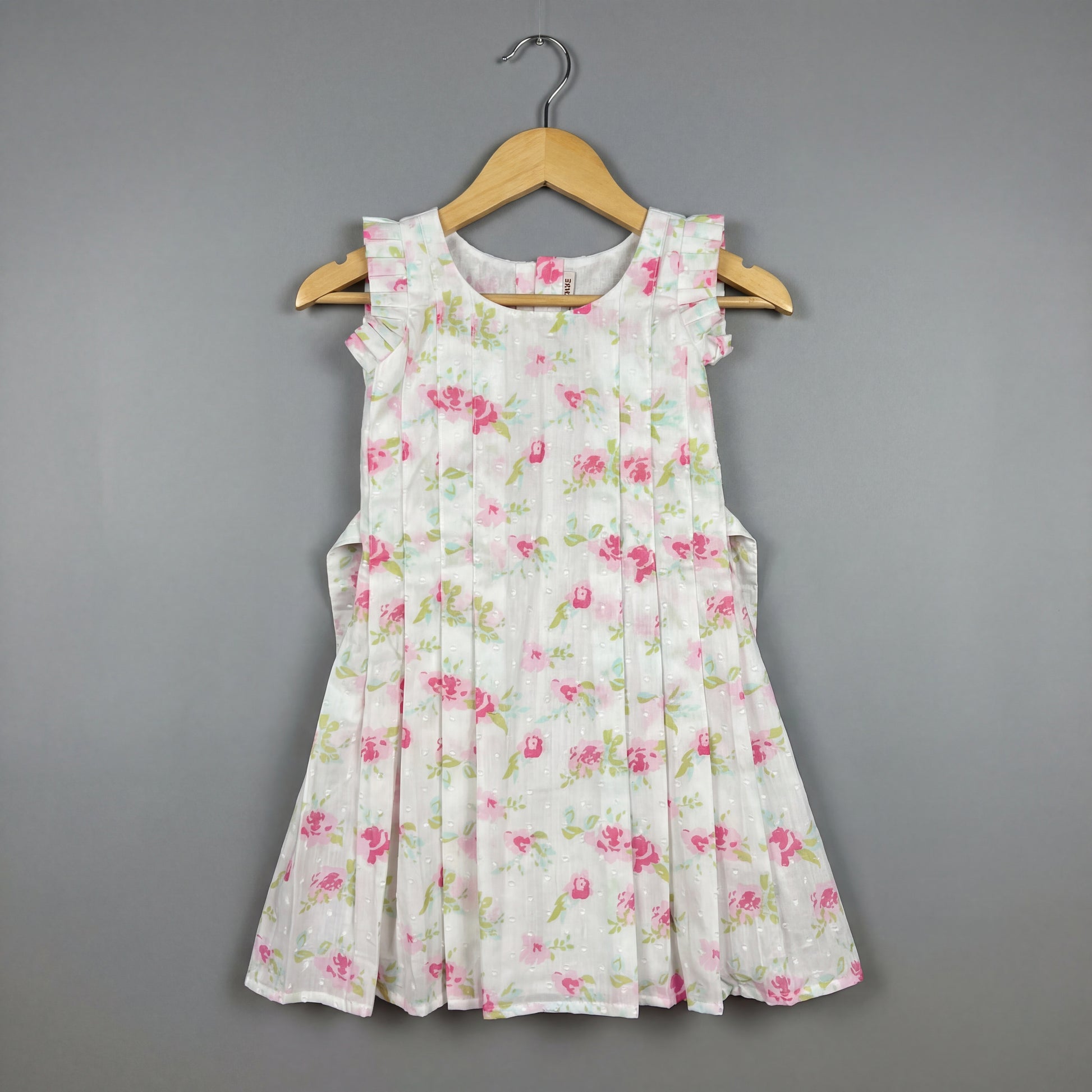 Floral Pleated Cotton Frock with Pleated Straps