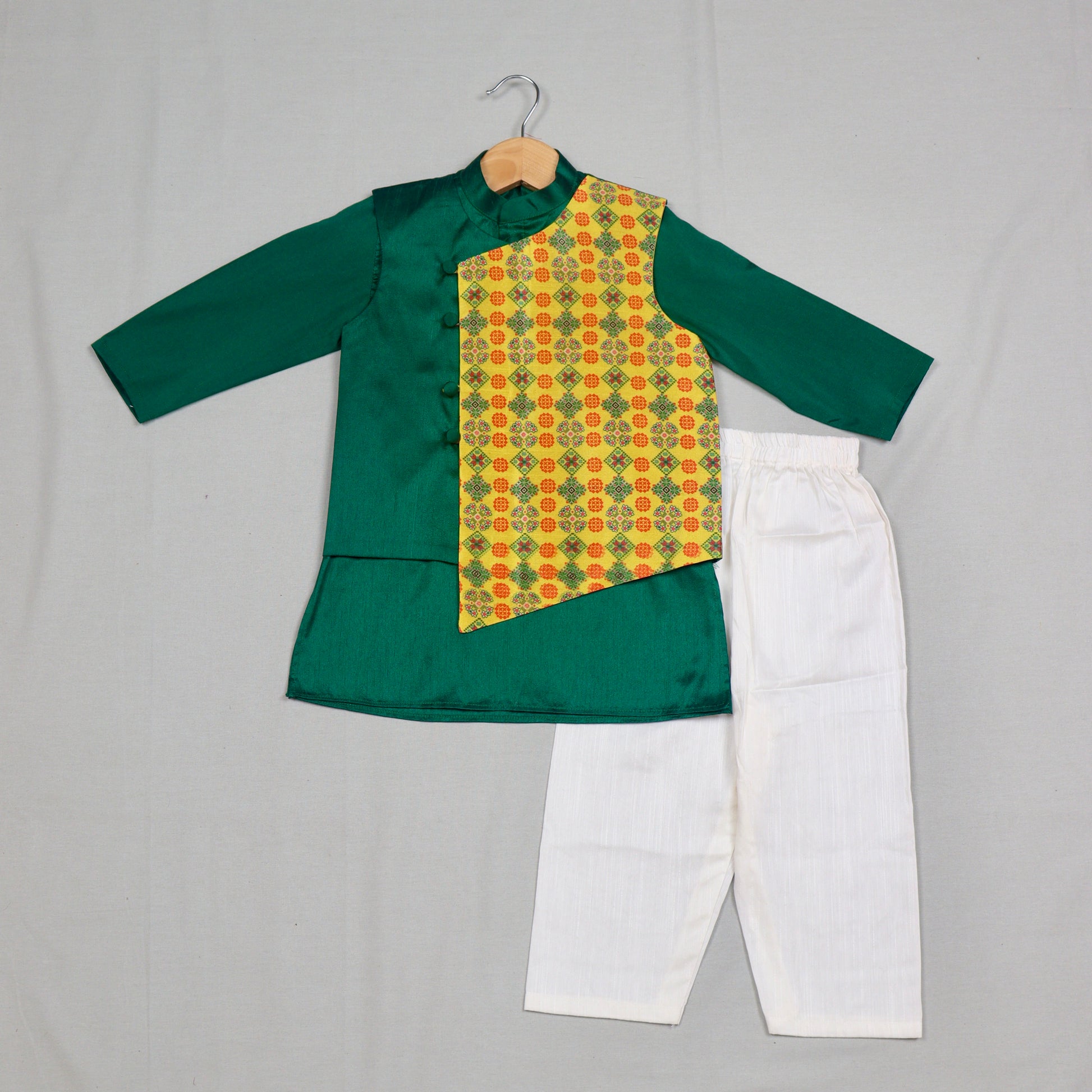 • Jacket Color: Yellow Patola + Green Raw Silk