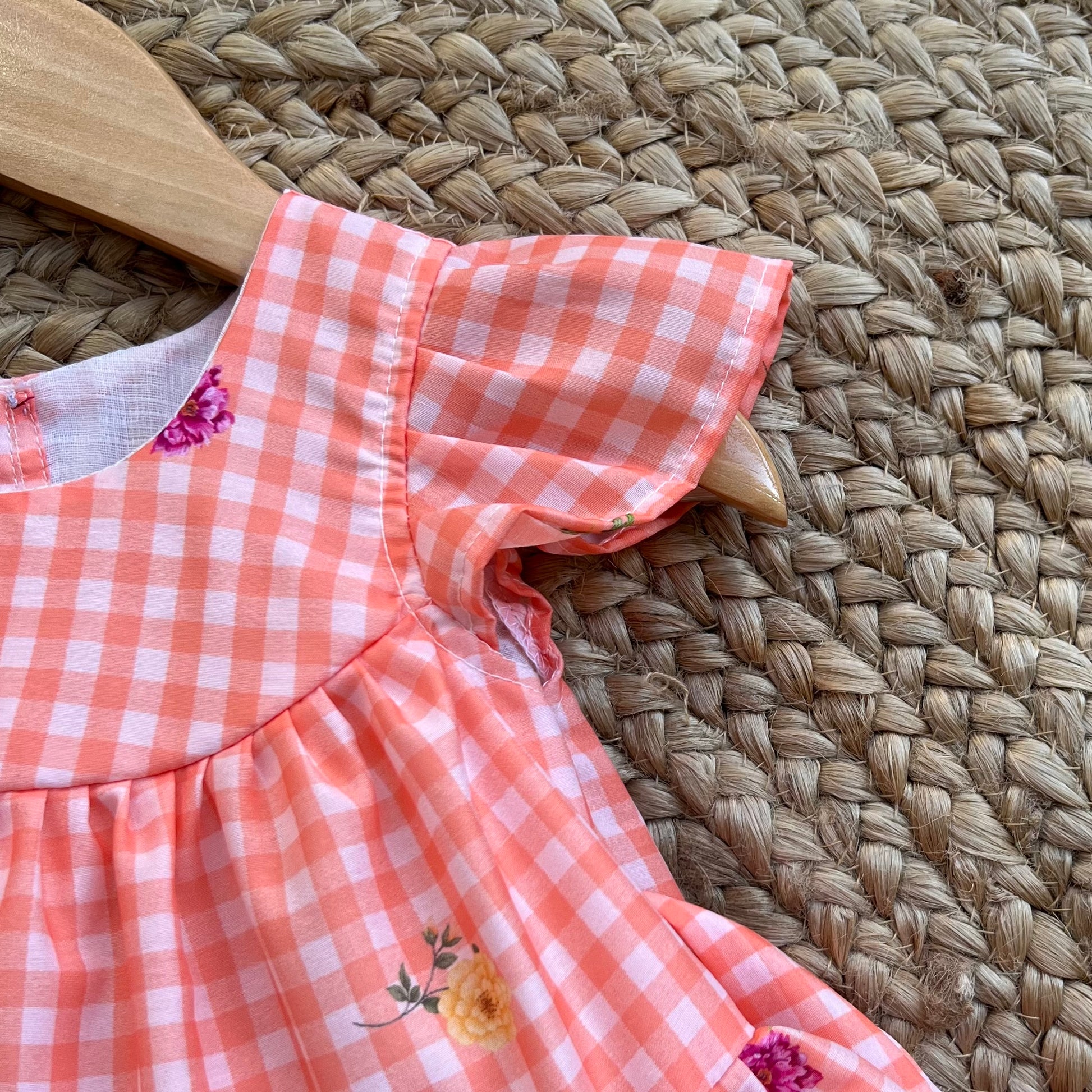 Colour: orange with white checks & floral print