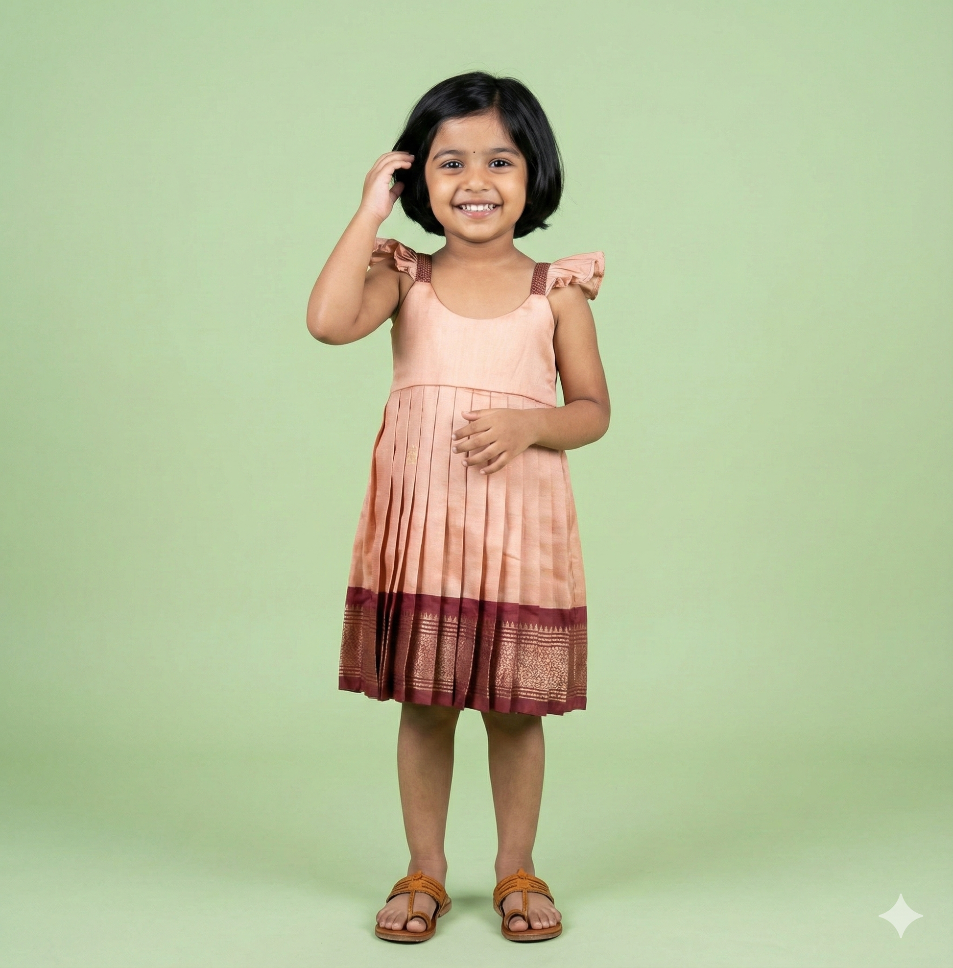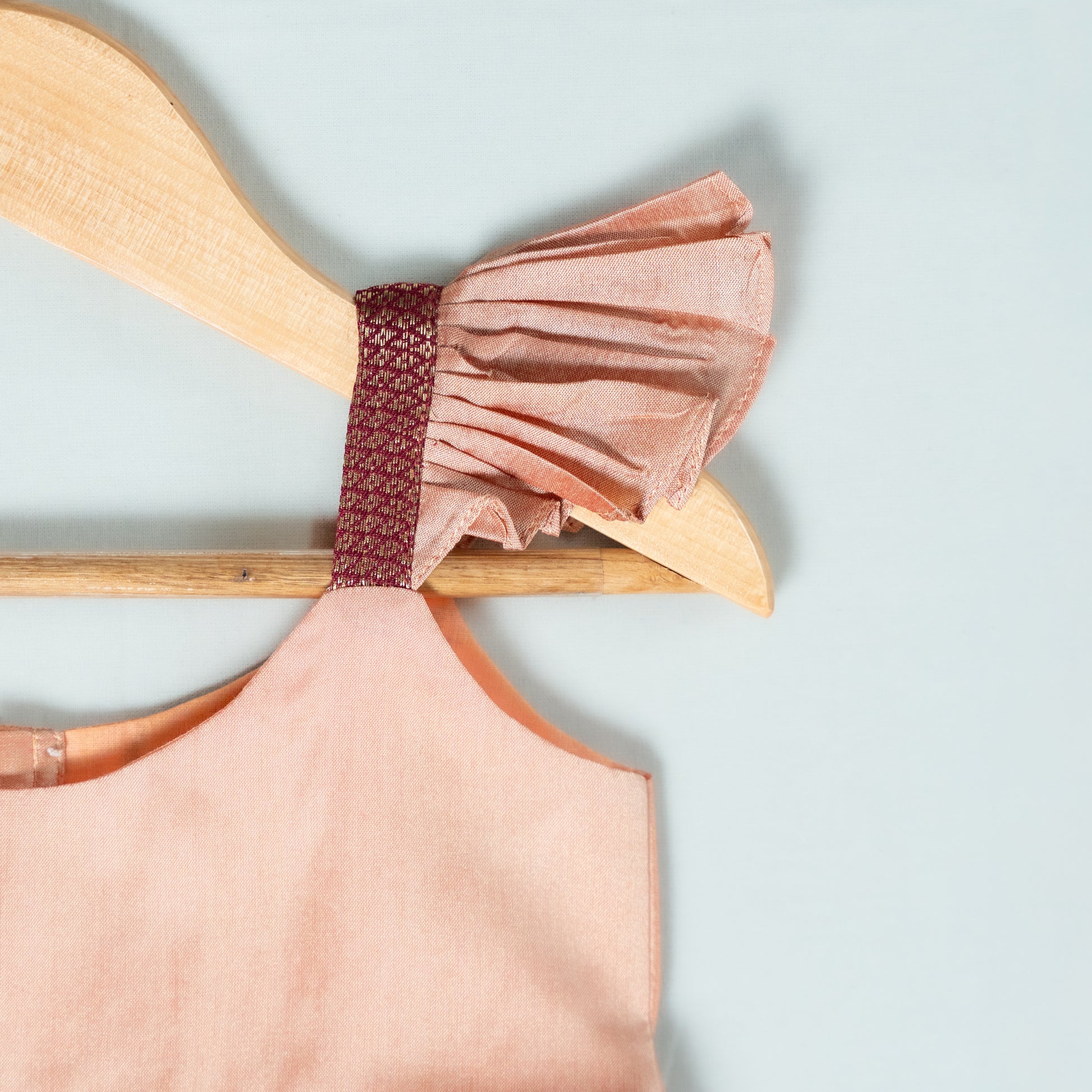 Peach Pink and Maroon Semi Paithani Frock