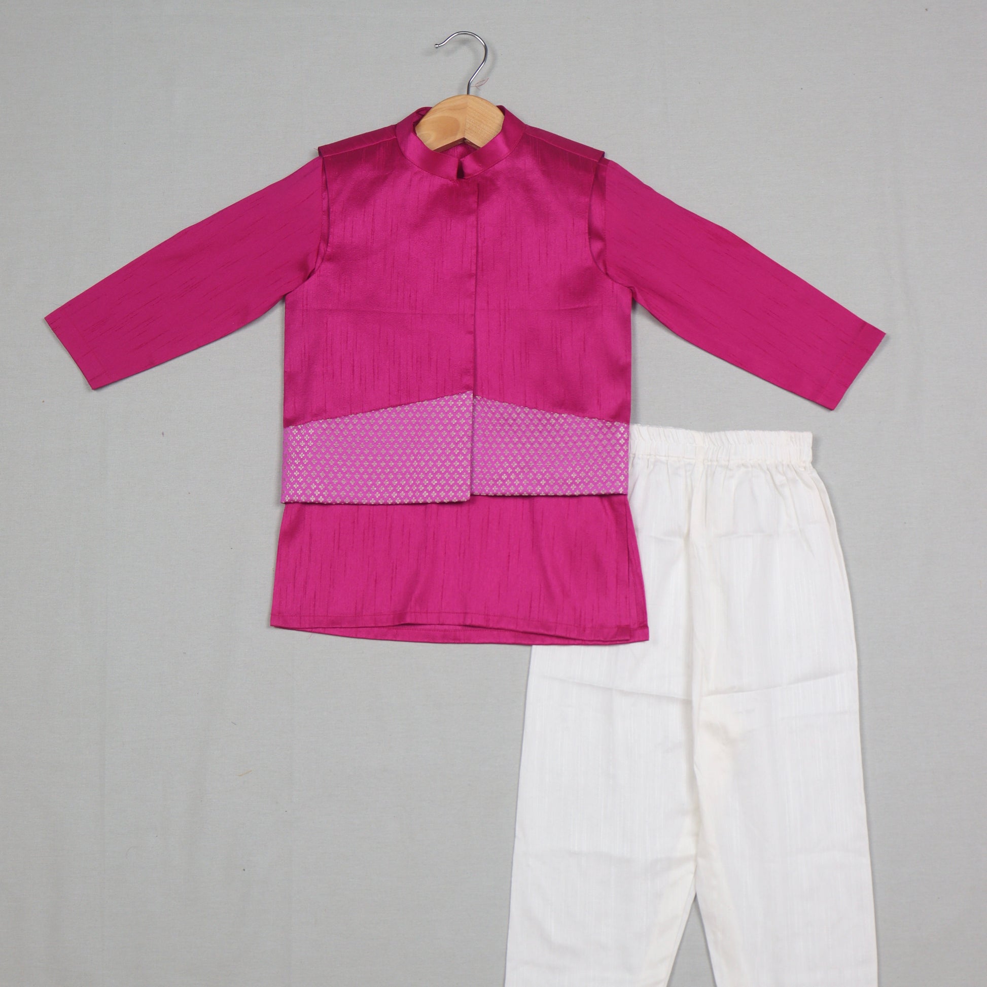 Pink Raw Silk Kurta Set with Banarasi Jacket
