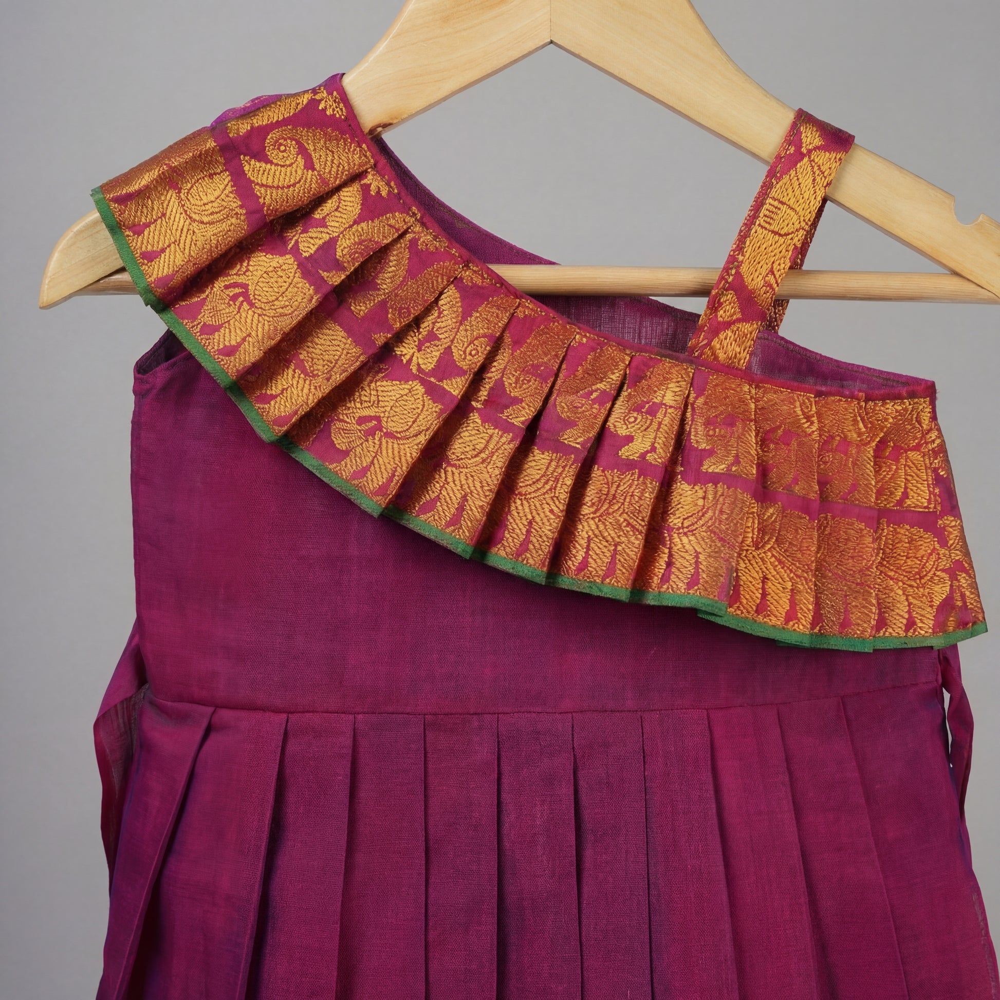 Royal Purple with Green Traditional Narayanapet Cotton Frock