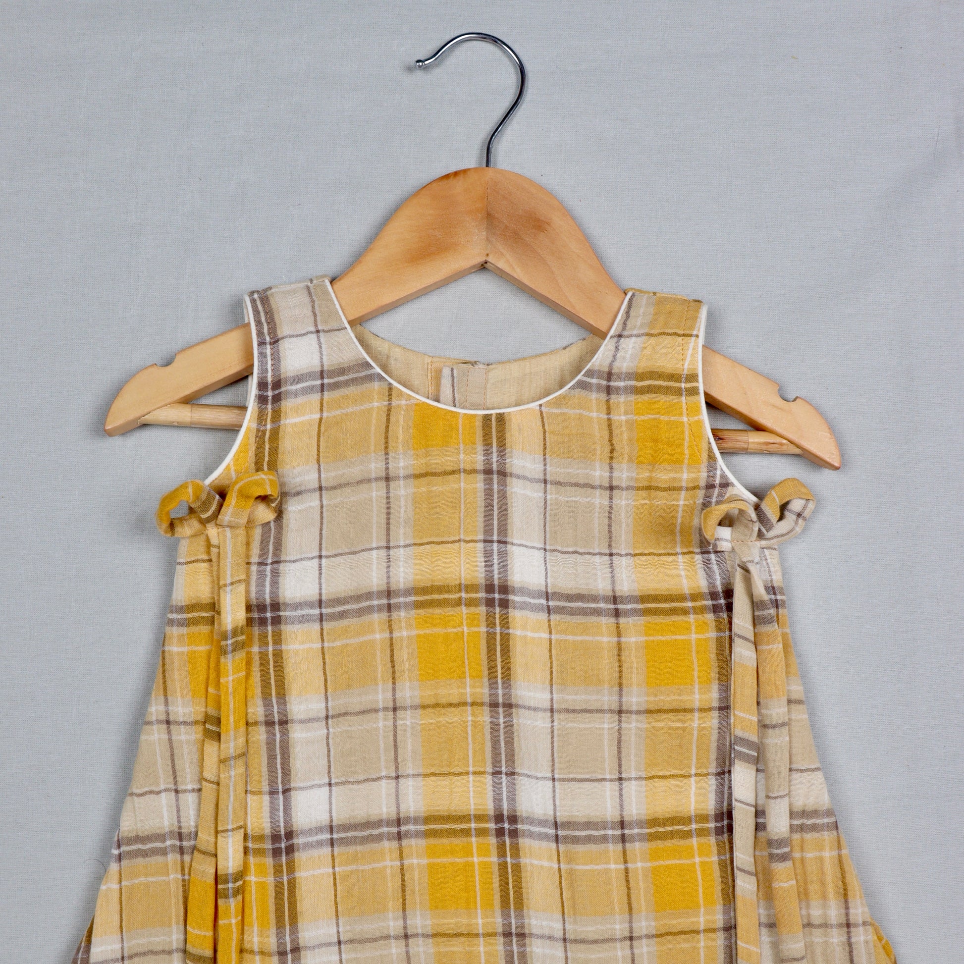 Yellow and white checked pattern frock